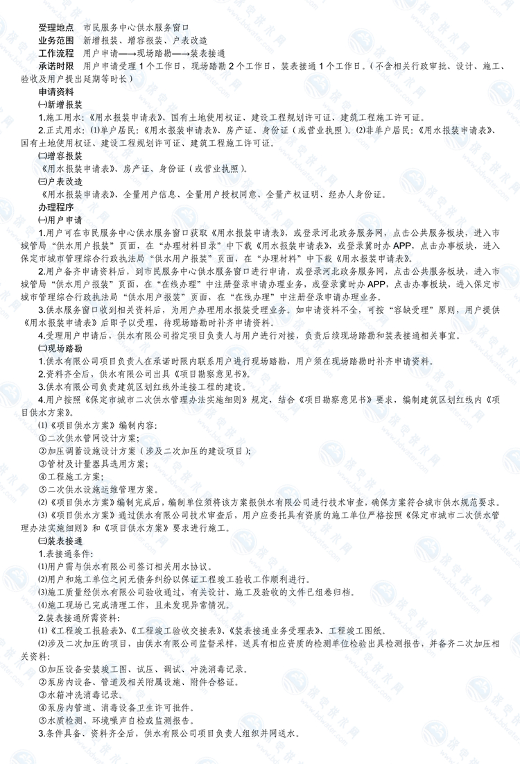用水報(bào)裝業(yè)務(wù)