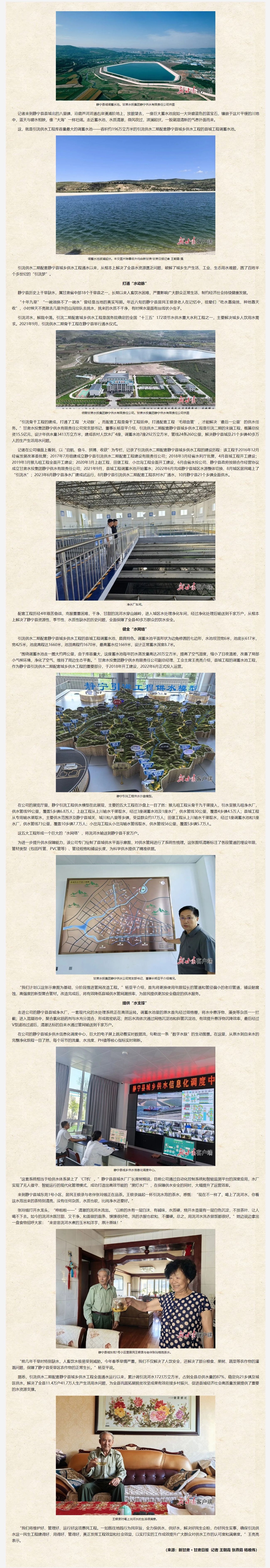 涓涓清流潤(rùn)旱塬 群眾喝上放心水——引洮供水二期配套靜寧縣城鄉(xiāng)供水工程惠及民生