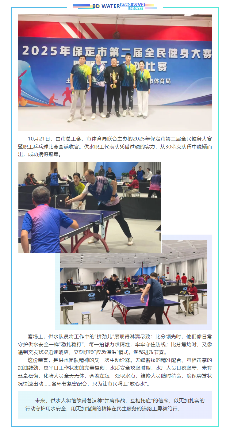 閃耀賽場(chǎng) 供水乒乓球代表隊(duì)斬獲佳績(jī)