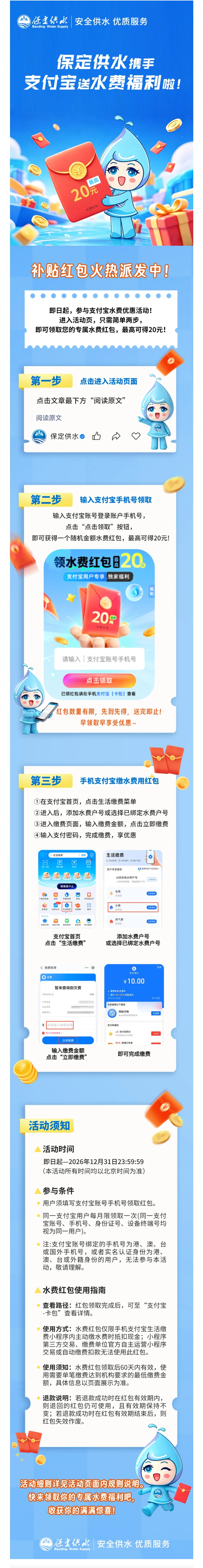 保定供水?dāng)y手支付寶送水費(fèi)福利啦!